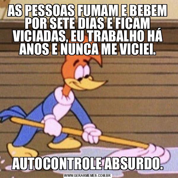 AS PESSOAS FUMAM E BEBEM POR SETE DIAS E FICAM VICIADAS, EU TRABALHO HÁ ANOS E NUNCA ME VICIEI. AUTOCONTROLE ABSURDO.