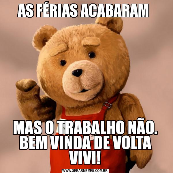 AS FÉRIAS ACABARAM MAS O TRABALHO NÃO. BEM VINDA DE VOLTA VIVI!