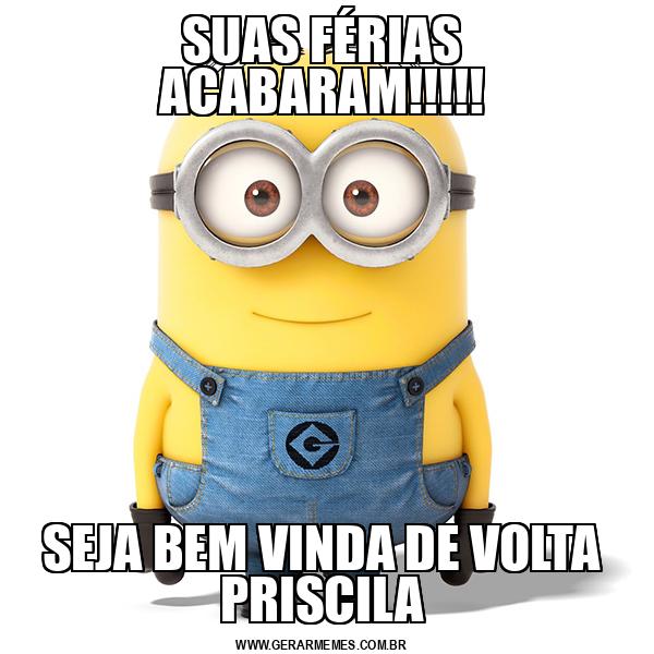 SUAS FÉRIAS ACABARAM!!!!! SEJA BEM VINDA DE VOLTA PRISCILA