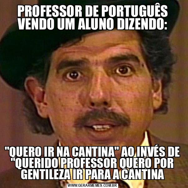 PROFESSOR DE PORTUGUÊS VENDO UM ALUNO DIZENDO: "QUERO IR NA CANTINA" AO INVÉS DE "QUERIDO PROFESSOR QUERO POR GENTILEZA IR PARA A CANTINA