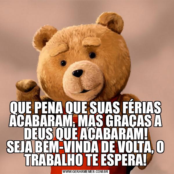 QUE PENA QUE SUAS FÉRIAS ACABARAM, MAS GRAÇAS A DEUS QUE ACABARAM! SEJA BEM-VINDA DE VOLTA, O TRABALHO TE ESPERA!