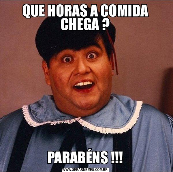 QUE HORAS A COMIDA CHEGA ? PARABÉNS !!!
