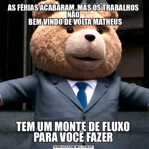 AS FÉRIAS ACABARAM, MAS OS TRABALHOS NÃO BEM VINDO DE VOLTA MATHEUS TEM UM MONTE DE FLUXO PARA VOCÊ FAZER