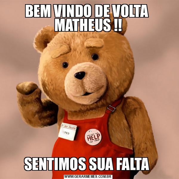 BEM VINDO DE VOLTA MATHEUS !! SENTIMOS SUA FALTA