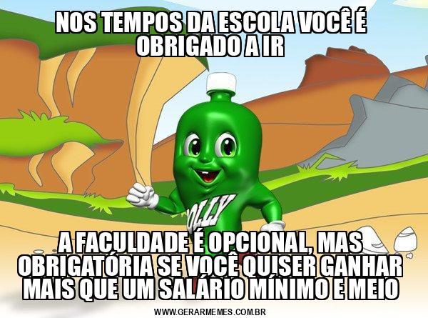 NOS TEMPOS DA ESCOLA VOCÊ É OBRIGADO A IR A FACULDADE É OPCIONAL, MAS OBRIGATÓRIA SE VOCÊ QUISER GANHAR MAIS QUE UM SALÁRIO MÍNIMO E MEIO