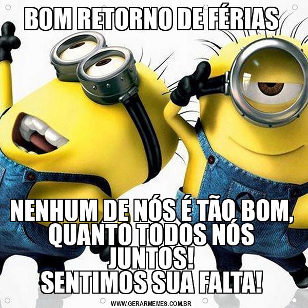 BOM RETORNO DE FÉRIAS NENHUM DE NÓS É TÃO BOM, QUANTO TODOS NÓS JUNTOS! SENTIMOS SUA FALTA!