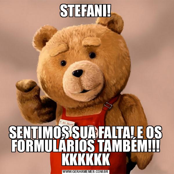 STEFANI! SENTIMOS SUA FALTA! E OS FORMULÁRIOS TAMBÉM!!! KKKKKK