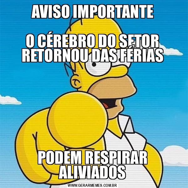 AVISO IMPORTANTE O CÉREBRO DO SETOR RETORNOU DAS FÉRIAS PODEM RESPIRAR ALIVIADOS