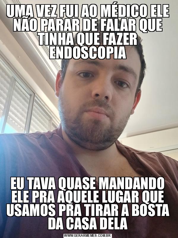 UMA VEZ FUI AO MÉDICO ELE NÃO PARAR DE FALAR QUE TINHA QUE FAZER ENDOSCOPIA EU TAVA QUASE MANDANDO ELE PRA AQUELE LUGAR QUE USAMOS PRA TIRAR A BOSTA DA CASA DELA