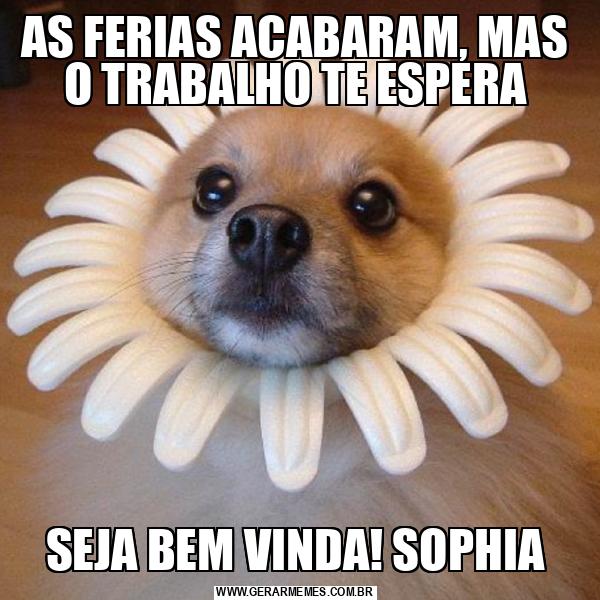 AS FERIAS ACABARAM, MAS O TRABALHO TE ESPERA SEJA BEM VINDA! SOPHIA