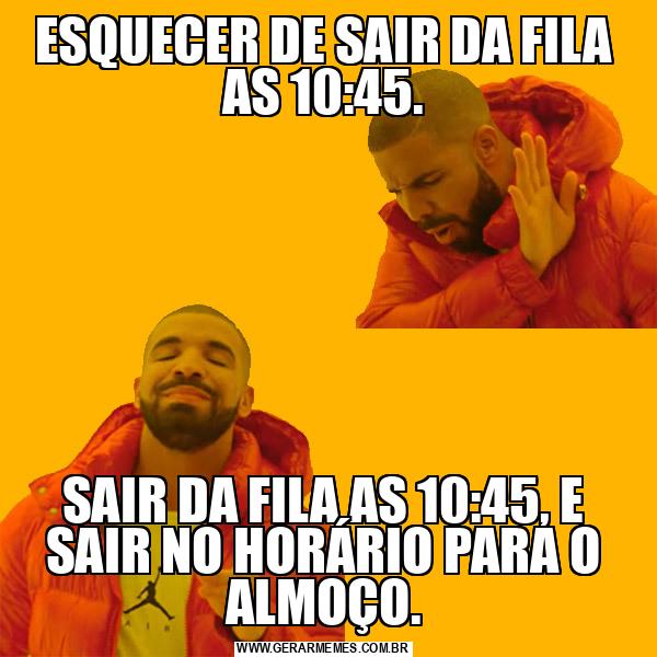 ESQUECER DE SAIR DA FILA AS 10:45. SAIR DA FILA AS 10:45, E SAIR NO HORÁRIO PARA O ALMOÇO.