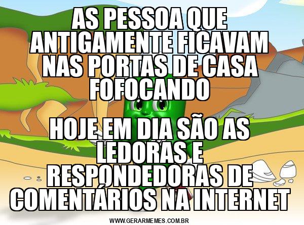AS PESSOA QUE ANTIGAMENTE FICAVAM NAS PORTAS DE CASA FOFOCANDO HOJE EM DIA SÃO AS LEDORAS E RESPONDEDORAS DE COMENTÁRIOS NA INTERNET