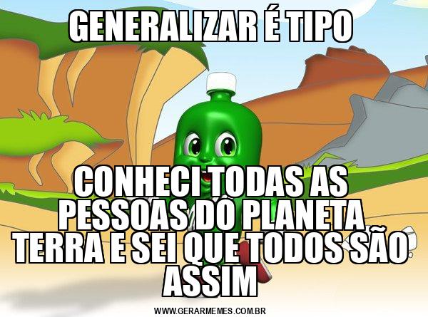 GENERALIZAR É TIPO CONHECI TODAS AS PESSOAS DO PLANETA TERRA E SEI QUE TODOS SÃO ASSIM