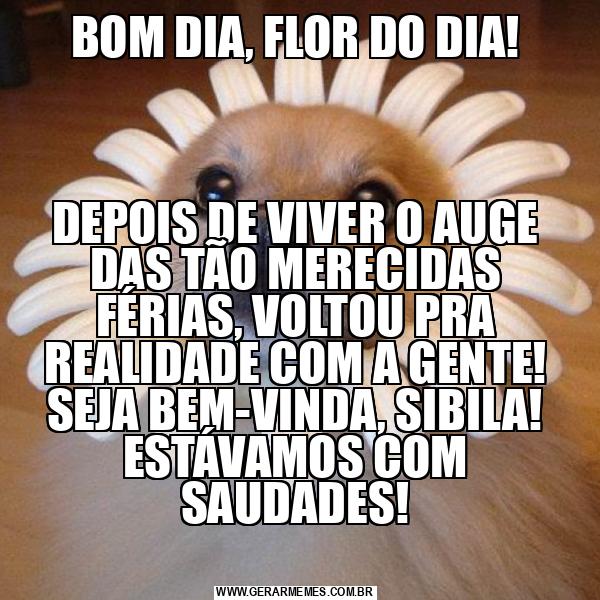 BOM DIA, FLOR DO DIA! DEPOIS DE VIVER O AUGE DAS TÃO MERECIDAS FÉRIAS, VOLTOU PRA REALIDADE COM A GENTE! SEJA BEM-VINDA, SIBILA! ESTÁVAMOS COM SAUDADES!