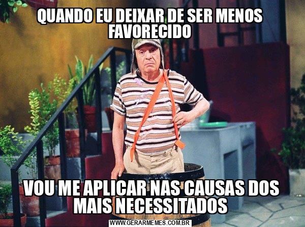 QUANDO EU DEIXAR DE SER MENOS FAVORECIDO VOU ME APLICAR NAS CAUSAS DOS MAIS NECESSITADOS