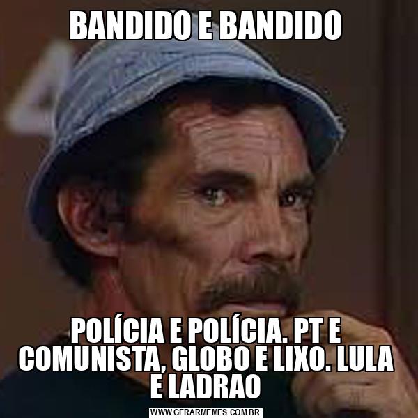 BANDIDO E BANDIDO POLÍCIA E POLÍCIA. PT E COMUNISTA, GLOBO E LIXO. LULA E LADRAO