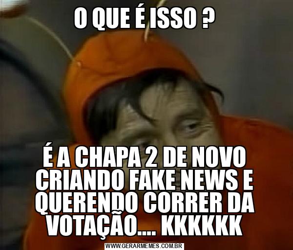 O QUE É ISSO ? É A CHAPA 2 DE NOVO CRIANDO FAKE NEWS E QUERENDO CORRER DA VOTAÇÃO…. KKKKKK