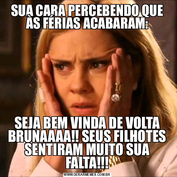 SUA CARA PERCEBENDO QUE ÀS FÉRIAS ACABARAM: SEJA BEM VINDA DE VOLTA BRUNAAAA!! SEUS FILHOTES SENTIRAM MUITO SUA FALTA!!!