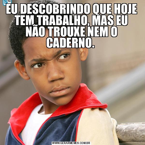 EU DESCOBRINDO QUE HOJE TEM TRABALHO, MAS EU NÃO TROUXE NEM O CADERNO.