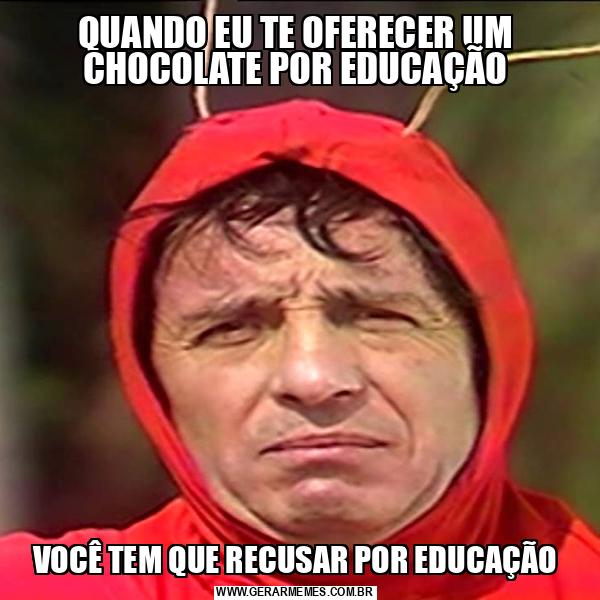 QUANDO EU TE OFERECER UM CHOCOLATE POR EDUCAÇÃO VOCÊ TEM QUE RECUSAR POR EDUCAÇÃO