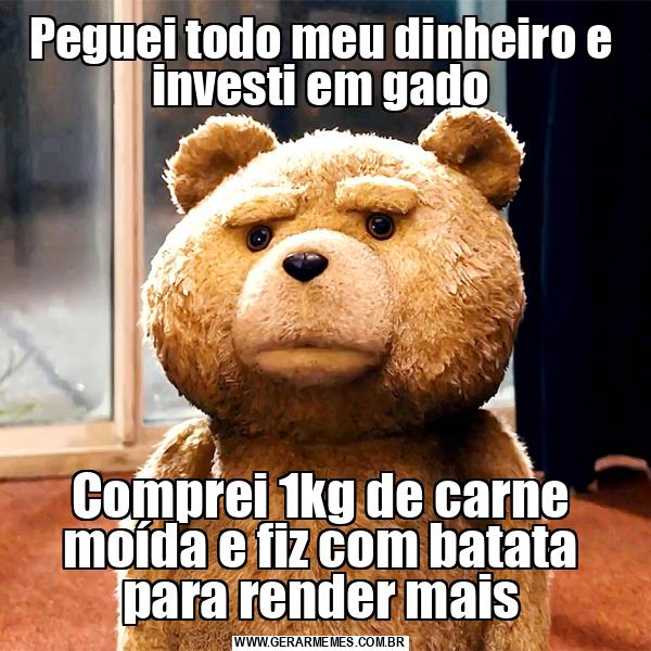 Peguei todo meu dinheiro e investi em gado Comprei 1kg de carne moída e fiz com batata para render mais