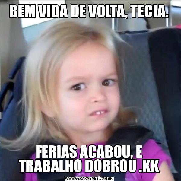 BEM VIDA DE VOLTA, TECIA. FERIAS ACABOU, E TRABALHO DOBROU .KK