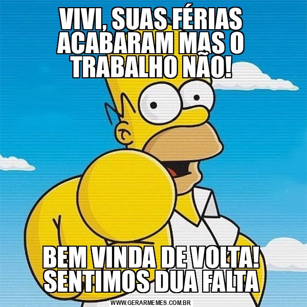 VIVI, SUAS FÉRIAS ACABARAM MAS O TRABALHO NÃO! BEM VINDA DE VOLTA! SENTIMOS DUA FALTA