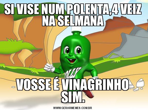 SI VISE NUM POLENTA,4 VEIZ NA SELMANA VOSSE É VINAGRINHO SIM.