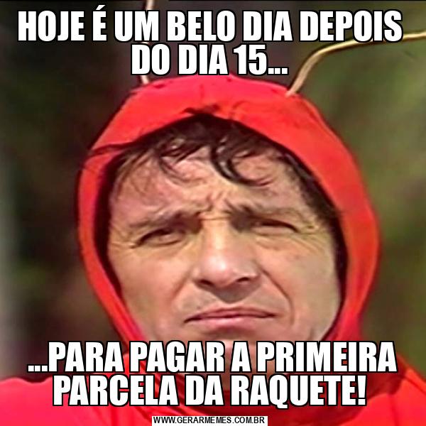 HOJE É UM BELO DIA DEPOIS DO DIA 15... ...PARA PAGAR A PRIMEIRA PARCELA DA RAQUETE!