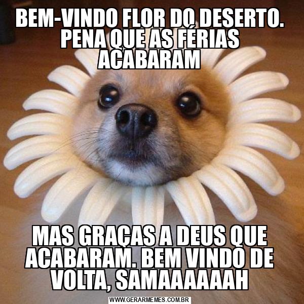 BEM-VINDO FLOR DO DESERTO. PENA QUE AS FÉRIAS ACABARAM MAS GRAÇAS A DEUS QUE ACABARAM. BEM VINDO DE VOLTA, SAMAAAAAAH