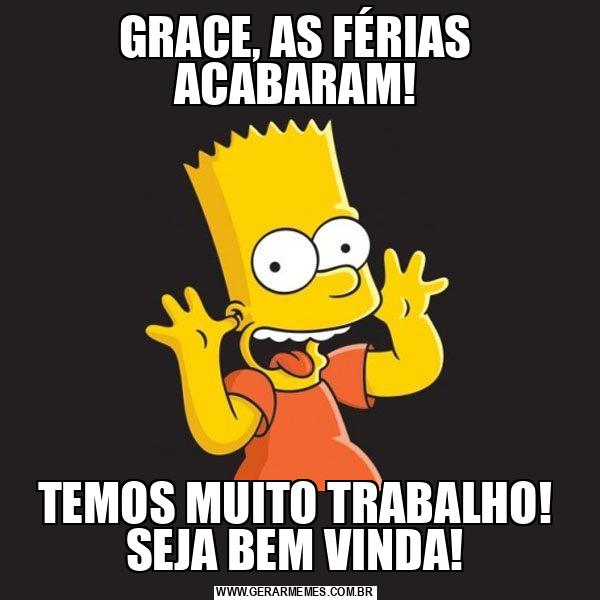 GRACE, AS FÉRIAS ACABARAM! TEMOS MUITO TRABALHO! SEJA BEM VINDA!
