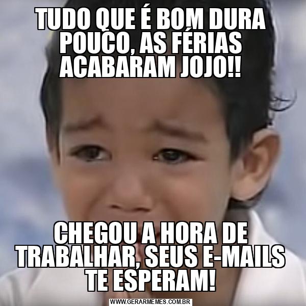 TUDO QUE É BOM DURA POUCO, AS FÉRIAS ACABARAM JOJO!! CHEGOU A HORA DE TRABALHAR, SEUS E-MAILS TE ESPERAM!