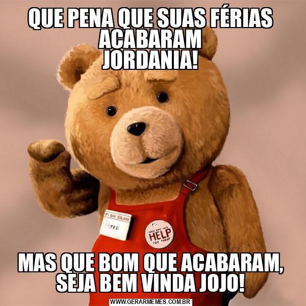 QUE PENA QUE SUAS FÉRIAS ACABARAM JORDANIA! MAS QUE BOM QUE ACABARAM, SEJA BEM VINDA JOJO!
