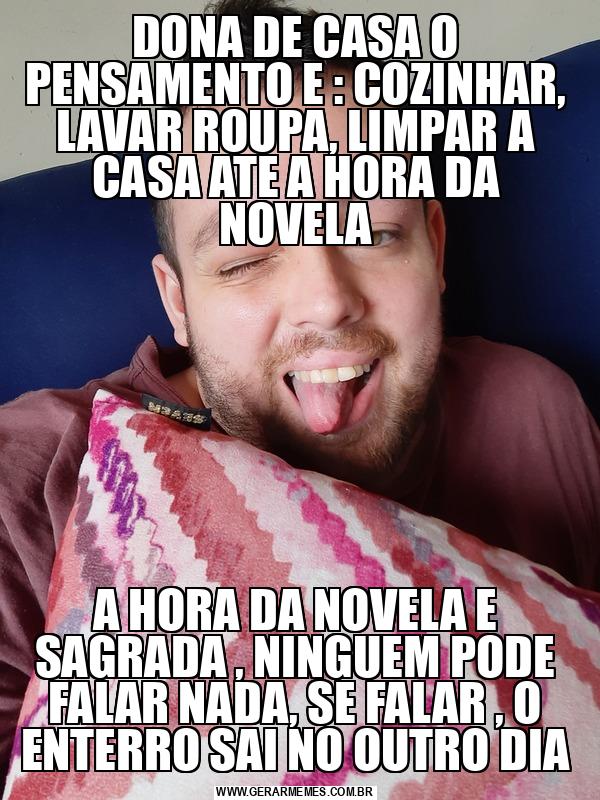 DONA DE CASA O PENSAMENTO E : COZINHAR, LAVAR ROUPA, LIMPAR A CASA ATE A HORA DA NOVELA A HORA DA NOVELA E SAGRADA , NINGUEM PODE FALAR NADA, SE FALAR , O ENTERRO SAI NO OUTRO DIA