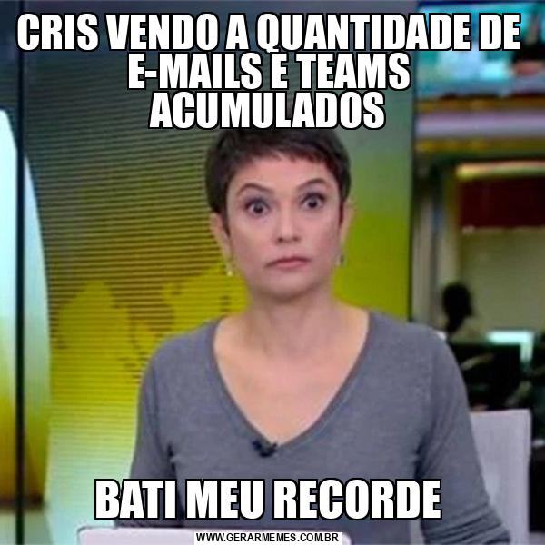 CRIS VENDO A QUANTIDADE DE E-MAILS E TEAMS ACUMULADOS BATI MEU RECORDE