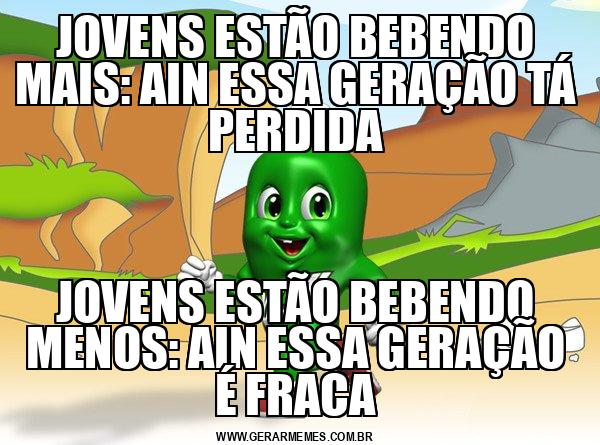 JOVENS ESTÃO BEBENDO MAIS: AIN ESSA GERAÇÃO TÁ PERDIDA JOVENS ESTÃO BEBENDO MENOS: AIN ESSA GERAÇÃO É FRACA