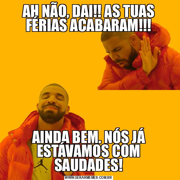 AH NÃO, DAI!! AS TUAS FÉRIAS ACABARAM!!! AINDA BEM. NÓS JÁ ESTÁVAMOS COM SAUDADES!