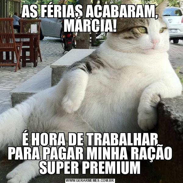 AS FÉRIAS ACABARAM, MÁRCIA! É HORA DE TRABALHAR PARA PAGAR MINHA RAÇÃO SUPER PREMIUM