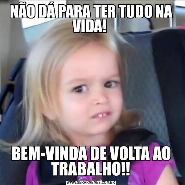 NÃO DÁ PARA TER TUDO NA VIDA! BEM-VINDA DE VOLTA AO TRABALHO!!