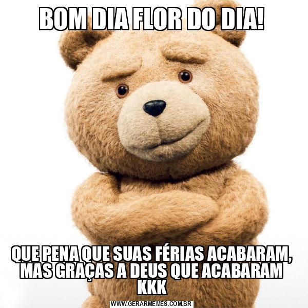 BOM DIA FLOR DO DIA! QUE PENA QUE SUAS FÉRIAS ACABARAM, MAS GRAÇAS A DEUS QUE ACABARAM KKK
