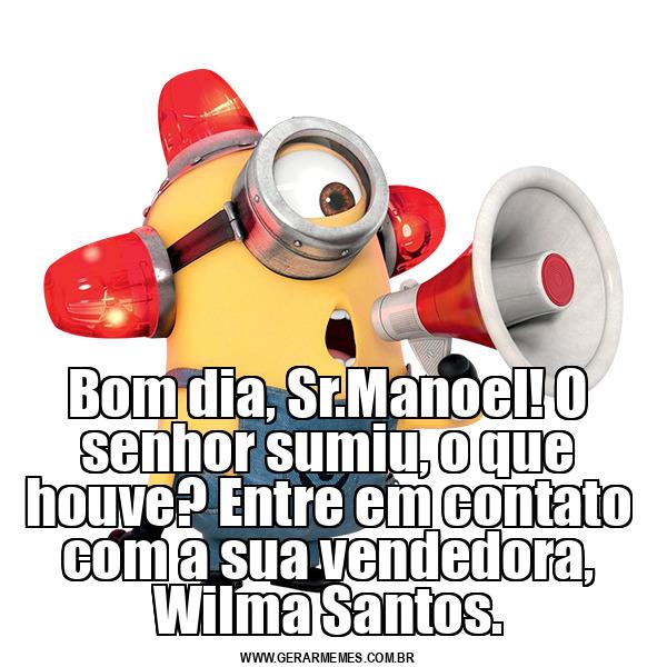 Bom dia, Sr.Manoel! O senhor sumiu, o que houve? Entre em contato com a sua vendedora, Wilma Santos.