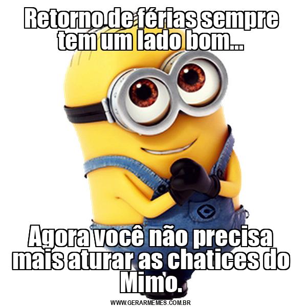 Retorno de férias sempre tem um lado bom... Agora você não precisa mais aturar as chatices do Mimo.
