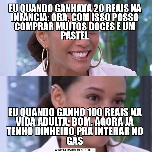EU QUANDO GANHAVA 20 REAIS NA INFANCIA: OBA, COM ISSO POSSO COMPRAR MUITOS DOCES E UM PASTEL EU QUANDO GANHO 100 REAIS NA VIDA ADULTA: BOM, AGORA JÁ TENHO DINHEIRO PRA INTERAR NO GÁS