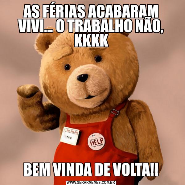 AS FÉRIAS ACABARAM VIVI... O TRABALHO NÃO, KKKK BEM VINDA DE VOLTA!!