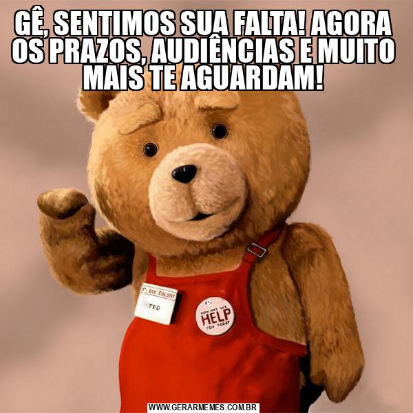 GÊ, SENTIMOS SUA FALTA! AGORA OS PRAZOS, AUDIÊNCIAS E MUITO MAIS TE AGUARDAM!