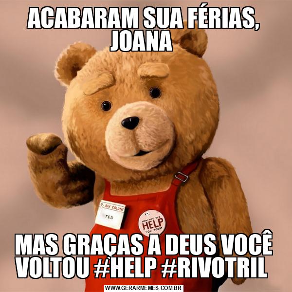 ACABARAM SUA FÉRIAS, JOANA MAS GRAÇAS A DEUS VOCÊ VOLTOU #HELP #RIVOTRIL