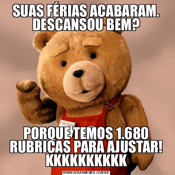 SUAS FÉRIAS ACABARAM. DESCANSOU BEM? PORQUE TEMOS 1.680 RUBRICAS PARA AJUSTAR! KKKKKKKKKK