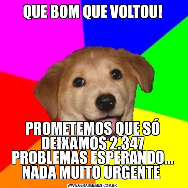 QUE BOM QUE VOLTOU! PROMETEMOS QUE SÓ DEIXAMOS 2.347 PROBLEMAS ESPERANDO... NADA MUITO URGENTE