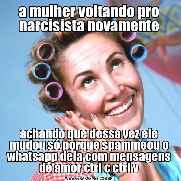 a mulher voltando pro narcisista novamente achando que dessa vez ele mudou só porque spammeou o whatsapp dela com mensagens de amor ctrl c ctrl v