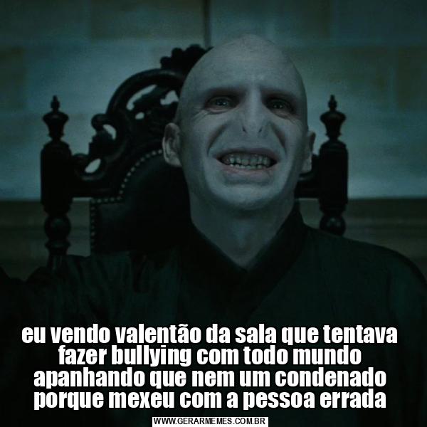 eu vendo valentão da sala que tentava fazer bullying com todo mundo apanhando que nem um condenado porque mexeu com a pessoa errada